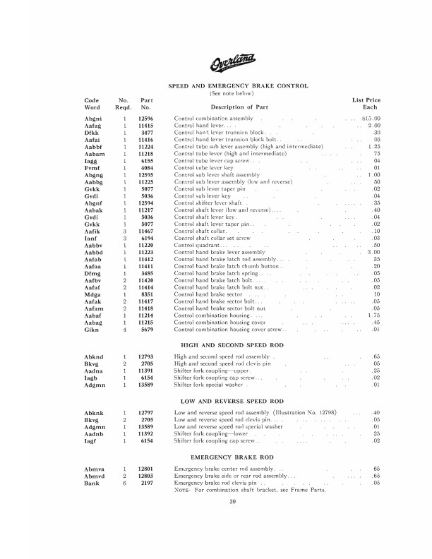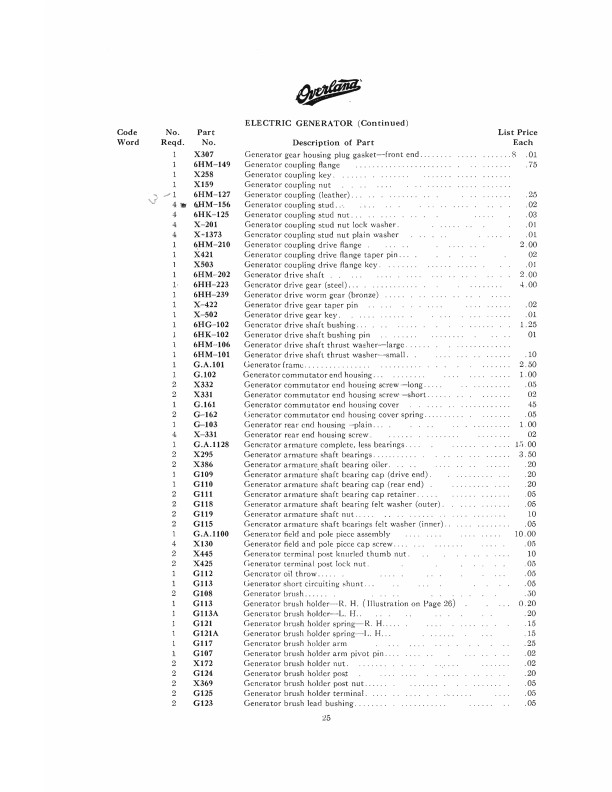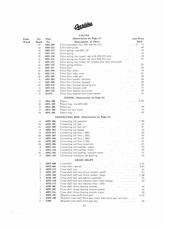 This is a reprint of the book that an Overland dealer's parts department used to order parts. You will find illustrations and the original part numbers, which are still useful today because most parts vendors still use factory numbers to keep track of their parts. Use this book to make your search for parts both quicker and easier. The illustrations in the book will help you to identify parts. You can also identify if the parts you are buying are original and complete; if you're missing parts, you can use the book to see what you should have. You'll see original part numbers for mechanical parts, body parts, and accessories. About half the book is text, and the other half is illustration. The book includes a convenient alphabetical index by part name. it is in new condition. Buy now to own the best parts book for your Overland.
