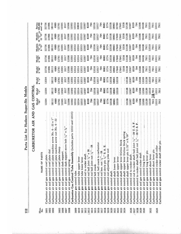 "Parts Catalog for Hudson 'Super-Six' Models"
