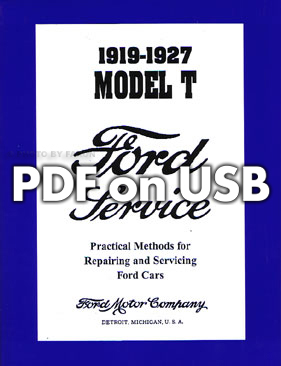 This USB offers page-for-page PDF images of the bound manual that Ford mechanics used to service cars and trucks. It includes the 296 page "1919-1927 Model T Ford Service Practical Methods for Repairing and Servicing Ford Cars."