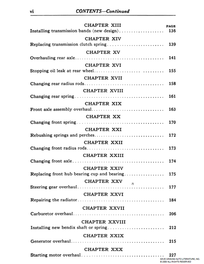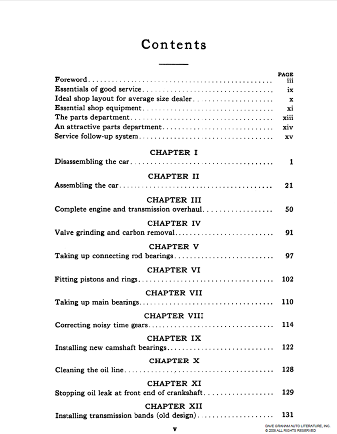 You will find step-by-step instructions for repairing all of the mechanical parts of your vehicle with 577 pictures and diagrams. We hear that it's considered the Model T "Bible." You will learn about disassembly & reassembly, engine & transmission overhaul, valve grinding, connecting rods, fitting pistons and rings, replacing bearings, correcting noisy time gears, cleaning the oil line, stopping oil leaks, changing the axle, changing springs & radius rods, radiator repair. Troubleshoot starting failure, misfiring, backfiring, engine knocks, clutch troubles, and electrical problems. You will find out how to overhaul the engine & transmission, axle, steering gear, carburetor, generator, and starting motor.