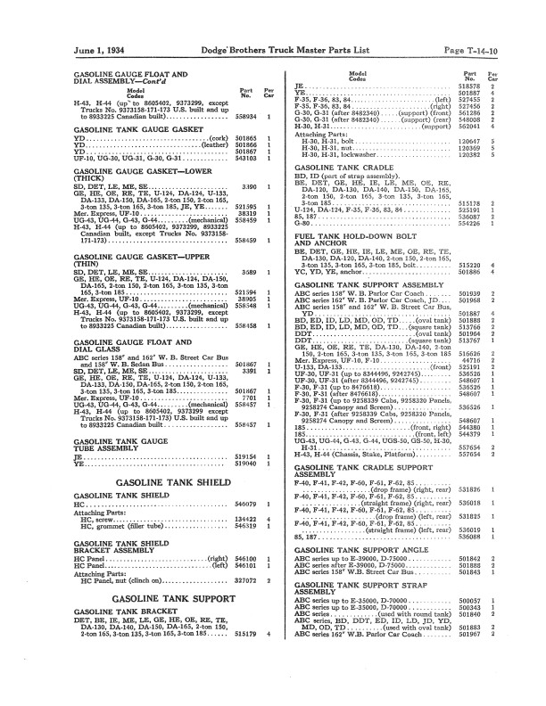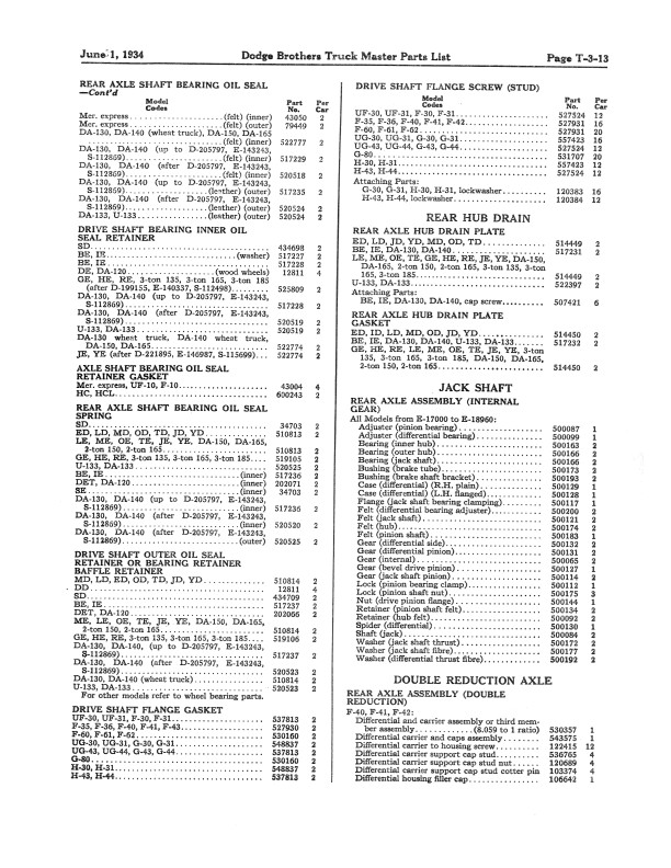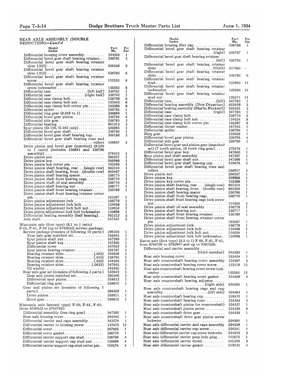 This manual is a reprint of the book that originally would have been used in a dealer's parts department so that customers could order parts. You will find illustrations and the original part numbers, which are still useful today because most parts vendors still use Dodge's numbers to keep track of their parts. Use this book to make your search for parts both quicker and easier. The illustrations in the book will help you to identify parts, and the cutaway views can aid you with assembly or disassembly of some parts of the vehicle - this is a great help for working on the truck (especially for 1928-1933, when Dodge made no shop manual). You'll find illustrations for most mechanical parts and a few body parts. Covers accessories, axles, brakes, clutch, cooling, electrical, engine, exhaust, frame, fuel system, hood, propeller shaft, u-joint, springs, standard parts (nuts & bolts), steering, tools, transmission, wheels, and body. Find out which parts on your vehicle interchange with other years and models covered in this book. The manual is in new condition. Buy now to own the best parts book on your truck.