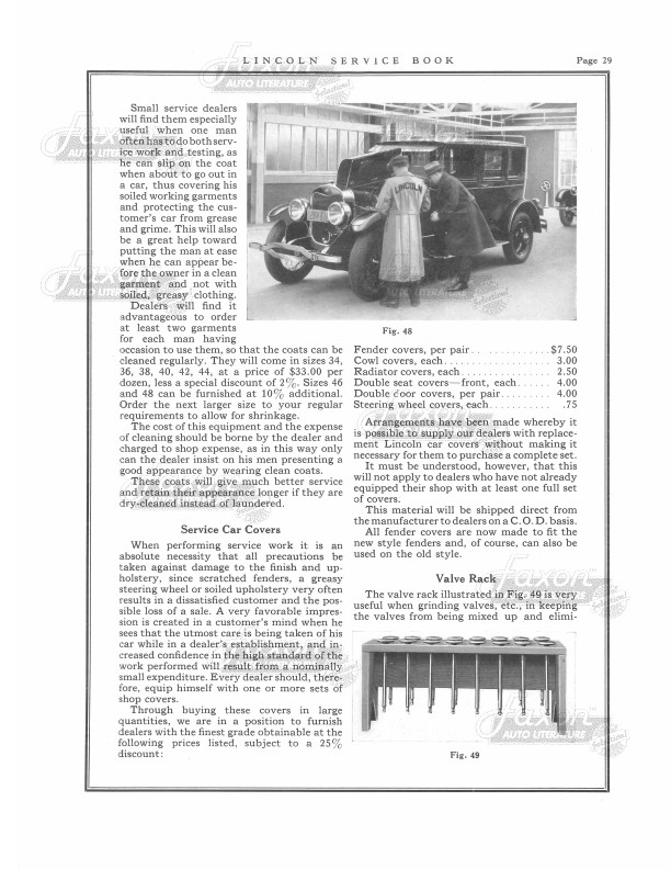 The manual is a page-for-page reproduction of the book that Lincoln mechanics used to service cars. You will find detailed service procedures for the power plant, camshaft, pistons, timing chain, clutch, tire pump, fuel system, carburetor, air cleaner, fuel tank, cooling system, water pump, radiator, electrical system, starter-generator, electro-fog generator, distributor, ignition, headlamps, ignition coil, horn, circuit breaker, steering gear, axles (front, rear), brakes and shock absorbers. With the step-by-step illustrated instructions, specifications, and wiring diagrams in this manual, you will have the information you need to get your project on the road and keep it there. This shop manual is in new condition. Each page is watermarked in the background like you see in the sample photos. Buy now to own the best manual for your vehicle.