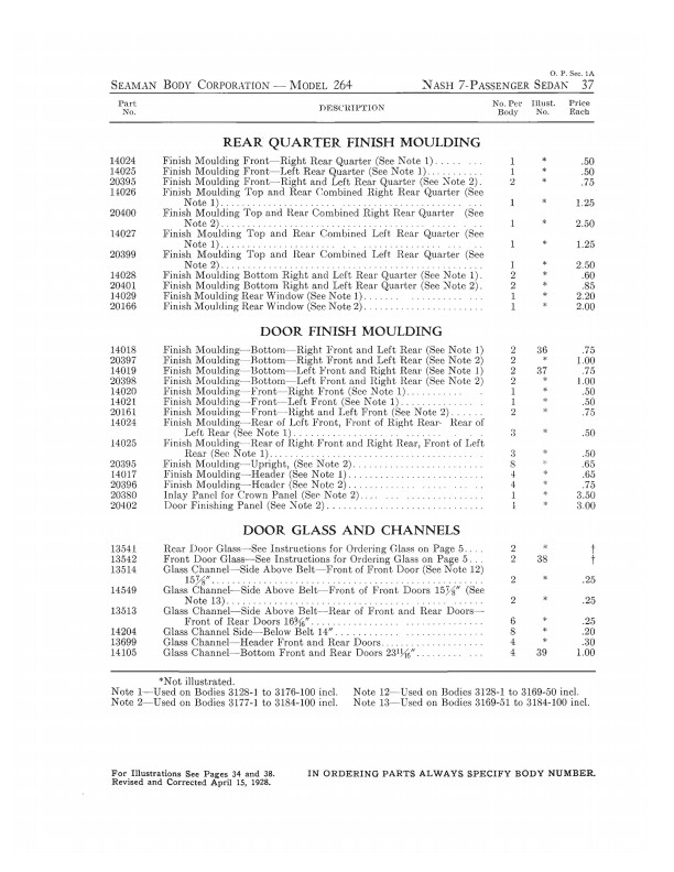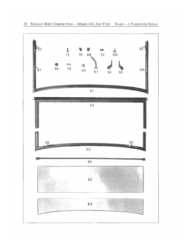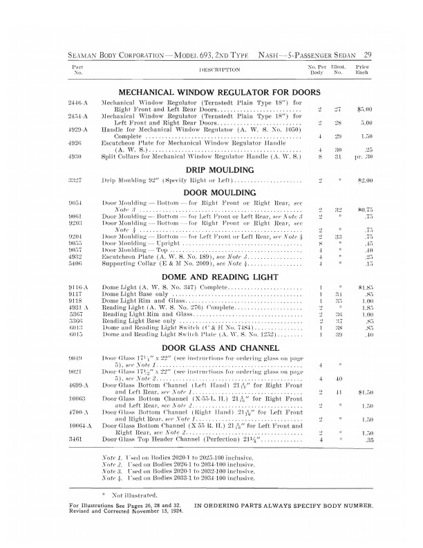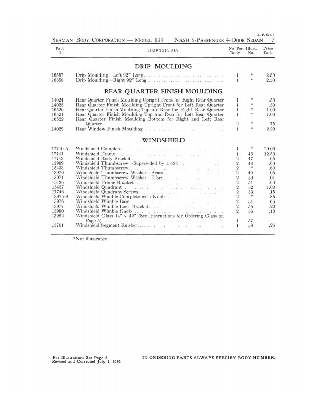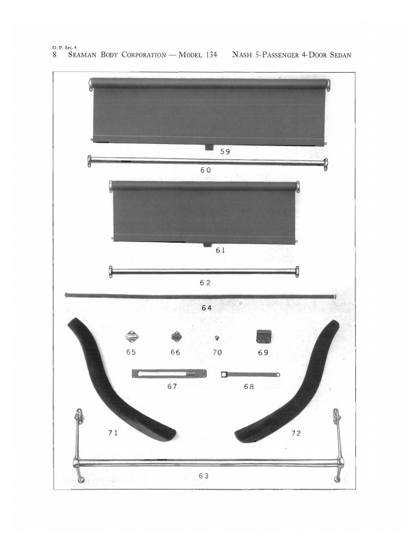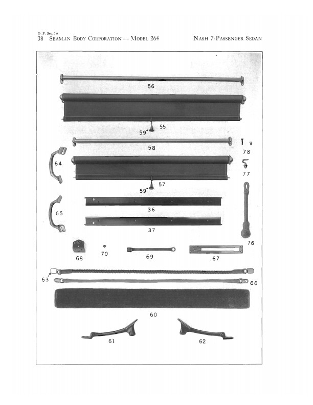 This is a reprint of the book that was used in a Nash dealer's parts department so that customers could order body parts. You will find illustrations and the original part numbers, which are still useful today because most parts vendors still use Nash's numbers to keep track of their parts. Use this book to make your search for parts both quicker and easier. The illustrations in the book will help you to identify parts. About half of the parts are illustrated. Covers body parts, including: wood frame, metal panels, mouldings, doors, hinges, door bumpers, locks, handles, window regulators and handles, glass and channels, curtains, foot rest, dome light, trunk, scuff plates, seats. upholstery, carpet miscellaneous trim, and more. For each model, you'll see a list of body numbers, which seems to be a serial number for each individual body. You get an overview side view illustration with an open door, diagrams of the wood frame, and illustrations of other parts laid out flat. Each model number has its own section of the book - most sections are about 8 to 14 pages. You also get a numerical index by part number, which gives you the name of the part and the models its used on. This can help identify loose parts and also find out which parts on your car interchange with other years and models covered in this book. The book is in new condition. Buy now to own the best body parts book for your car.