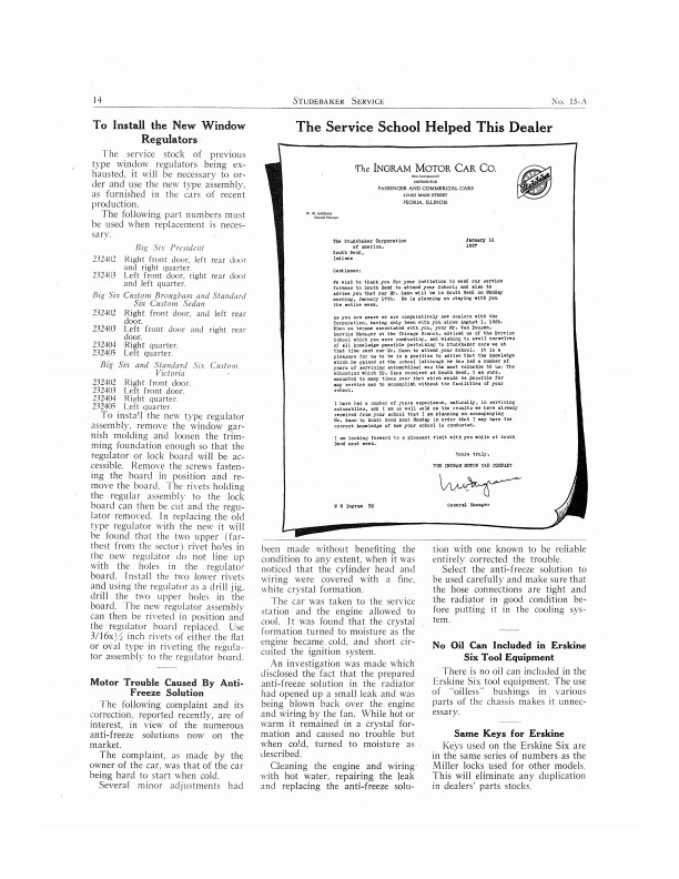 "Studebaker Service" This is a reprint of a set of bulletins originally used by Studebaker mechanics. You will find them chock full of service instructions. You'll also see plenty of historical information, including pictures of and stories about Studebaker dealerships & service cars, and much more. You'll see parts and service info for accessories, axles, body, brakes, clutch, transmission, engine, cooling system, carburetor, electrical, lubrication, springs, shock absorbers, steering gear, tires, wheels, and tools. This brand new strip-bound book measures 8.5" x 11" and has 506 pages. It includes bulletin numbers 1 through 30A, which are from January of 1926 through October of 1928. Since the 1925 models are nearly identical to 1926, these bulletins include repair for 1925 models also. Covers all 1925-1928.5 Studebaker cars, including Standard Six (ER), Special Six (EQ), Big Six (EP), Commander Big Six (EW), Commander (GB), Commander (GH), Standard Six/Dictator (EU), Dictator (GE), President Six (ES), President Eight (FA & FB), and Erskine (50 & 51). If you're familiar with the multi-volume Studebaker Library set that came out in 1927, these bulletins are the contents of volume 9. Buy now to own this hard-to-find service information.