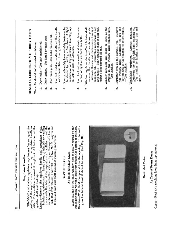 This is a reproduction of a book printed by GM for use by Chevy mechanics at the dealer. Find step-by-step illustrated instructions for remedies for noises & leaks, glass adjustments & installation, and door alignment. About half of this book focuses on noises and water leaks. You'll also find out about general body lubrication, as well as removal and replacement of mouldings, glass, and window regulators. Since this is for "closed bodies," it is for all Chevrolet Cars except convertibles. Printed originally in 1927, it should also be useful for 1925-1930. Buy now to own this hard-to-find manual.