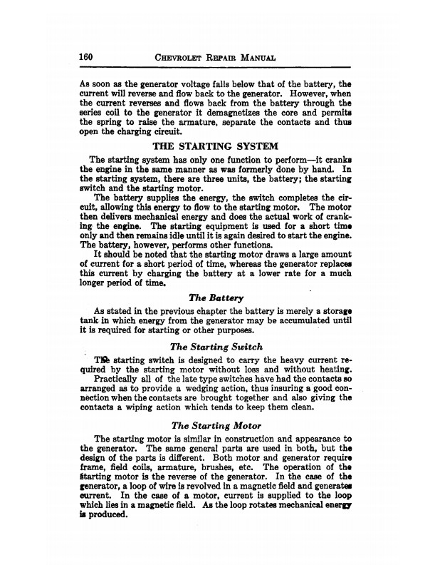 266 pages enlarged to 8.5 x 11 inches for easier reading. This is a reprint of the manual that a Chevrolet service mechanic would have used in the roaring twenties. You will find detailed repair instructions for the motor assembly, clutch assembly, rear & front axle, front & rear wheels, brakes, steering gear, carburetor, fuel pump, gas tank, radiator, electrical system, lubrication, closed body repairs, and more. You will also find diagrammed illustrations and exploded views to clarify the instructions. NEW condition! Buy now to own the best manual for your Chevy.