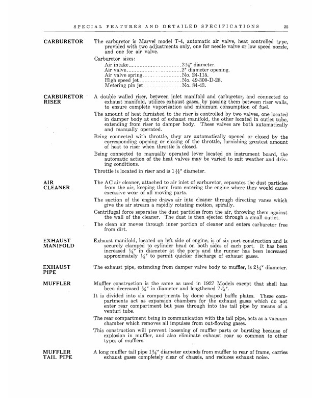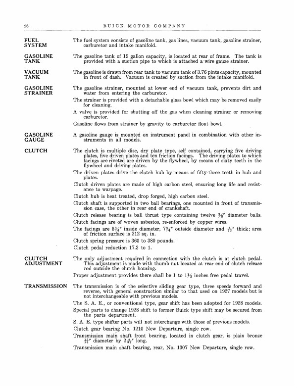 "Buick 1928 Models Special Features and Detailed Specifications"