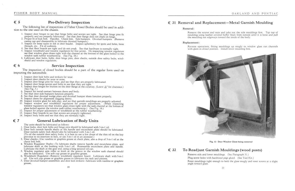 "Fisher Body Manual Directions for Inspecting, Servicing and Repairing Fisher Bodies Oakland and Pontiac 1928"