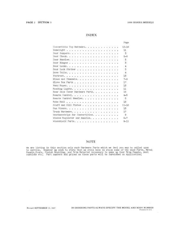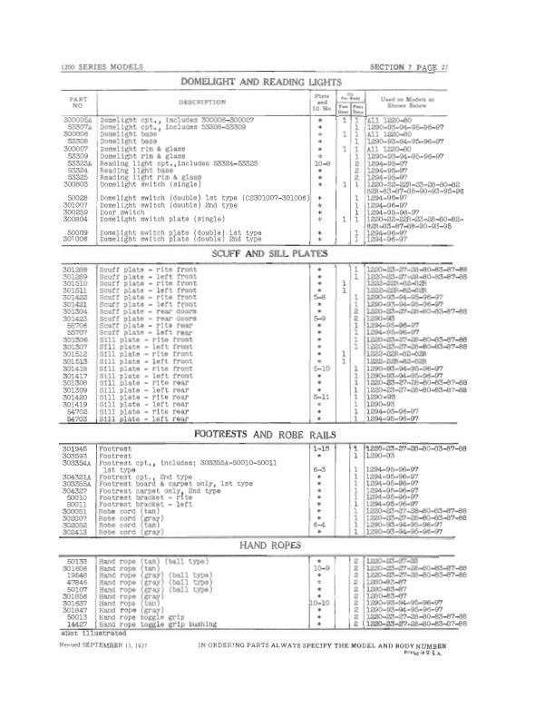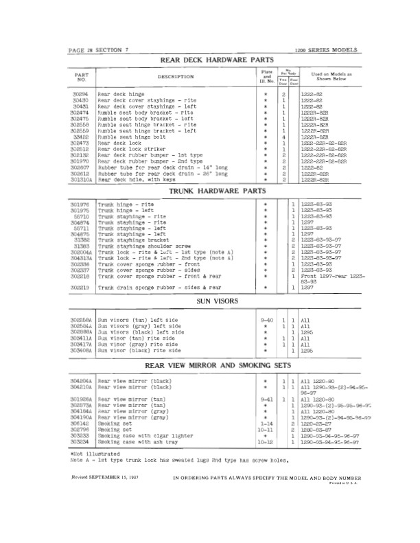 This is a reprint of the book that was used in a Nash dealer's parts department so that customers could order body parts. You will find illustrations and the original part numbers, which are still useful today because most parts vendors still use Nash's numbers to keep track of their parts. Use this book to make your search for parts both quicker and easier. The illustrations in the book will help you to identify parts. Some of the parts are illustrated, but not all of them. Covers body parts, including: wood frame, metal panels, mouldings, doors, hinges, door bumpers, locks, handles, window regulators and handles, glass and channels, curtains, dome light, trunk, scuff plates, seats. upholstery, carpet, miscellaneous trim, accessories, screws, and more. You get an overview side view illustration with an open door, an image or two looking toward the front interior and side interior, and illustrations of a few parts laid out flat. Each series has its own section of the book - sections vary from 13 to 52 pages. The book is in new condition. Buy now to own the best body parts book for your car.