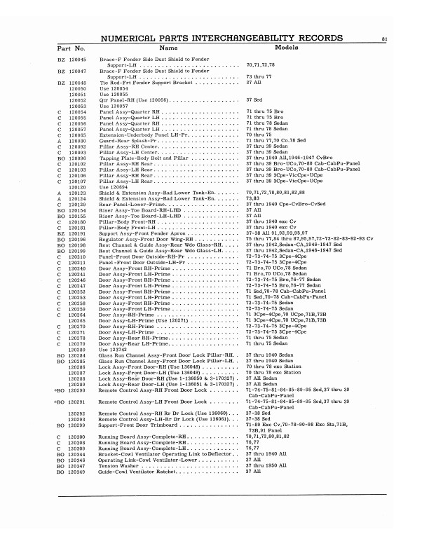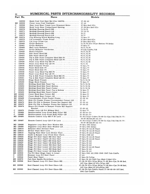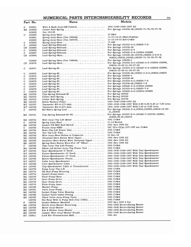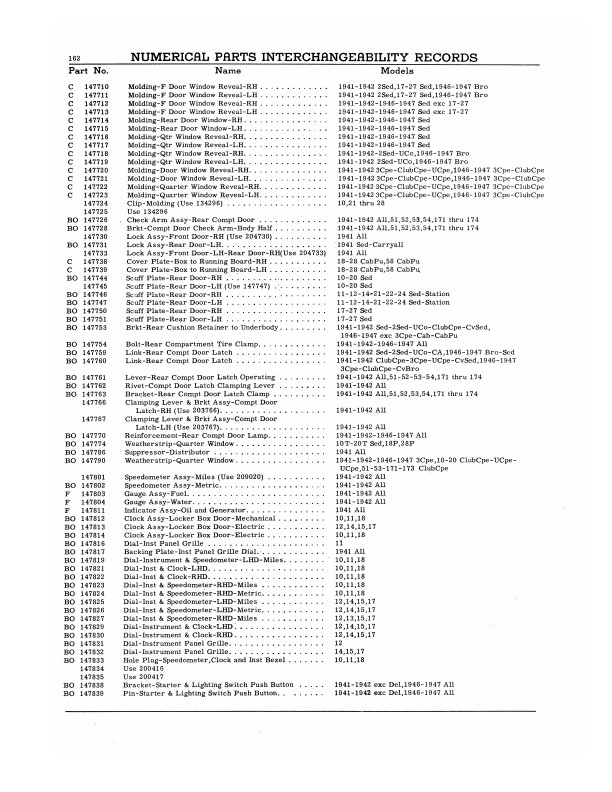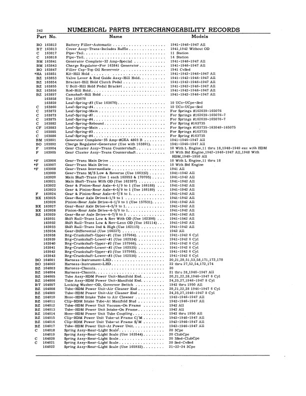 "Numerical Parts Interchangeability Record Hudson Build Cars All Models"