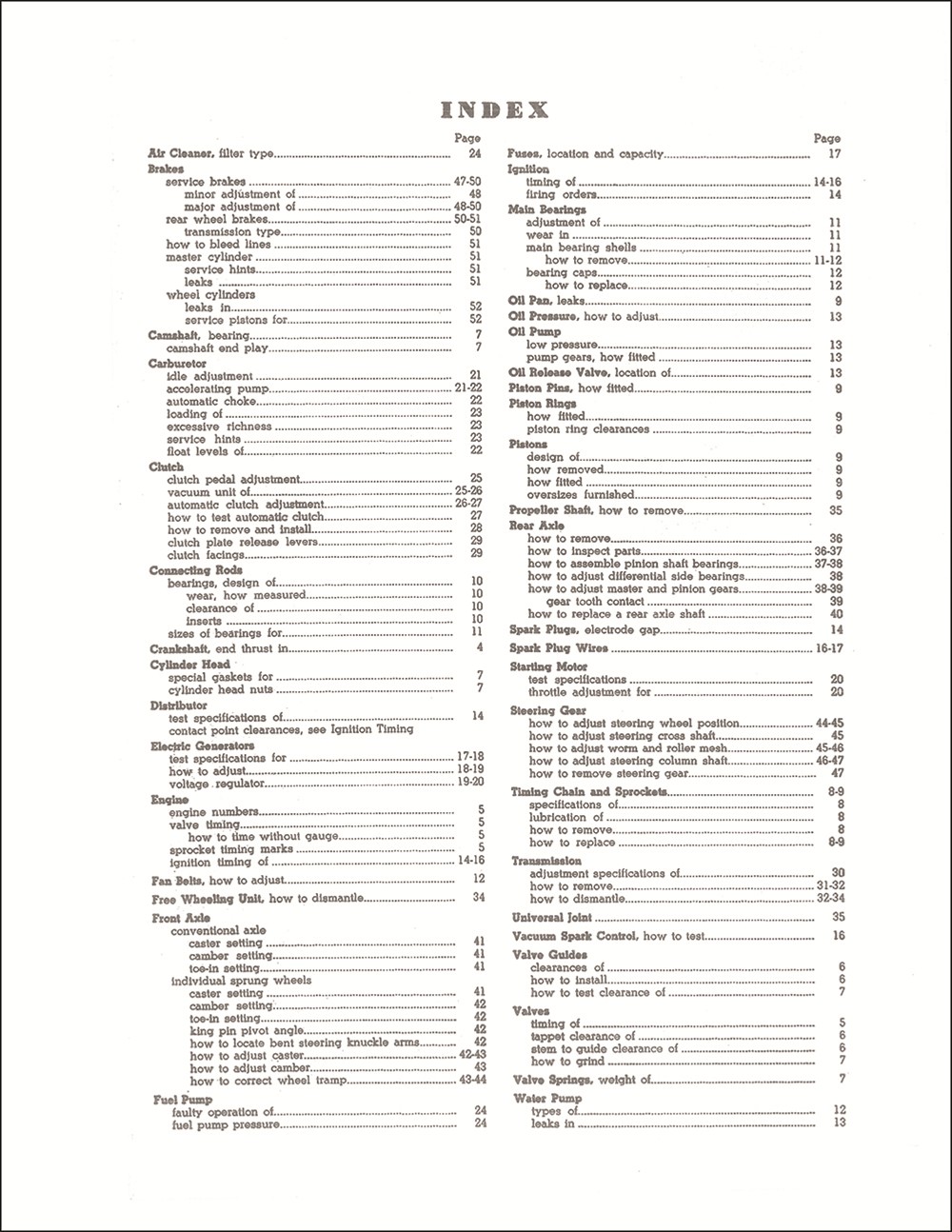 This is a high-quality reprint of a manual that mechanics used for the basics in servicing vehicles. Inside, you will find service procedures for ignition, carburetor adjustments & specifications, fuel pump, clutch adjustment & removal, transmission, axles, brake adjustment, and universal joint removal & disassembly. You'll see 9 pages for the engine, including specs, valve grinding, timing, oil pan removal, piston work, bearings, and more. With the step-by-step illustrated instructions, cutaway drawings, specifications, and wiring diagrams in this manual, you will have the information you need to get your project on the road and keep it there. The book is in new condition. Buy now to learn the basics on your Plymouth.