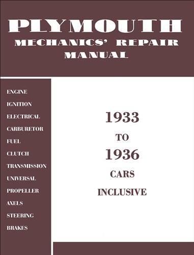 Plymouth Mechanics' Repair Manual 1933 to 1936 Cars Inclusive