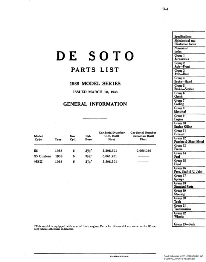 - the 155 page "De Soto Parts List 1938 Model Series Issued March 10, 1938",