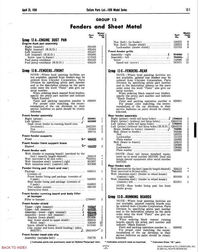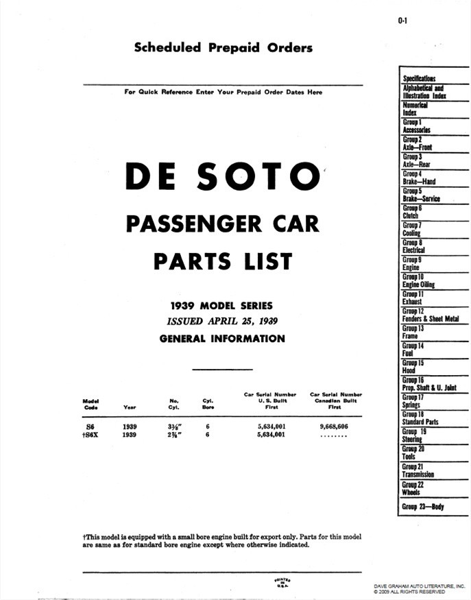 - the 148 page "De Soto Passenger Car Parts List 1939 Model Series Supersedes Issue of October 25, 1938 Issued April 25, 1939",