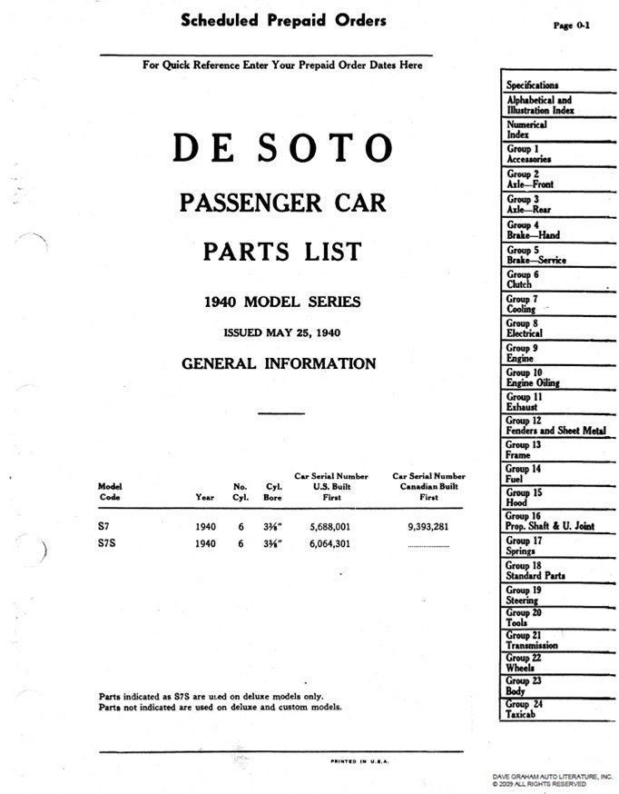 - the 211 page "De Soto Passenger Car Parts List 1940 Model Series Issued May 25, 1940",