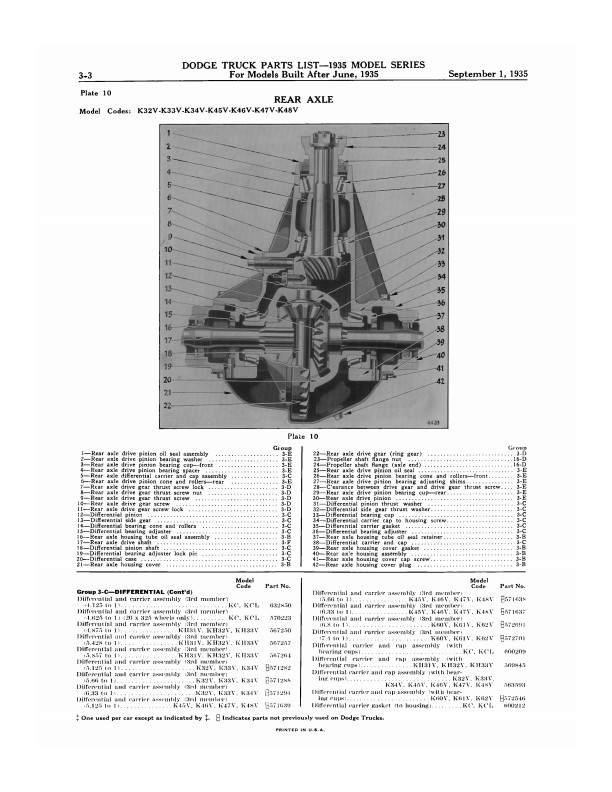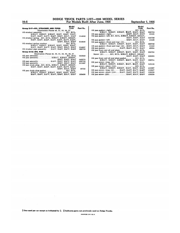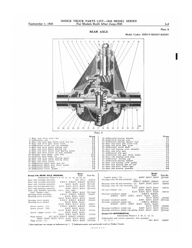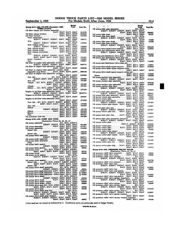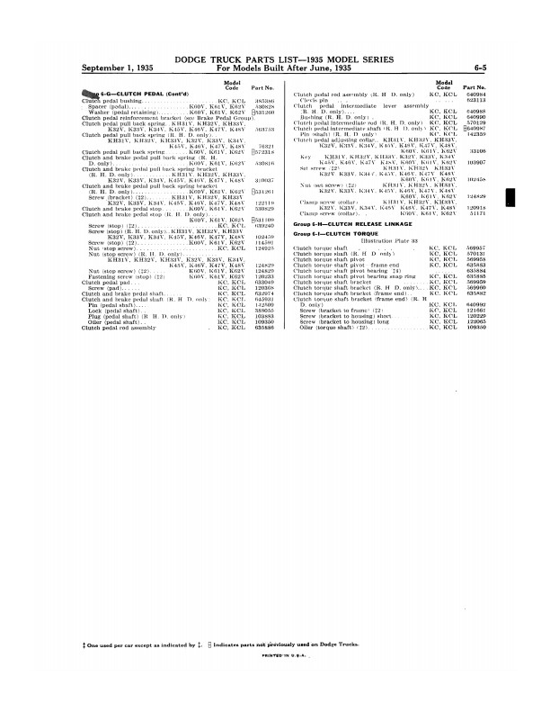 "Dodge Truck Parts List 1935 Model Series Trucks Built After June, 1935 As Herein Listed on Page 0-1 Issued September 1, 1935"