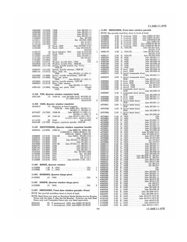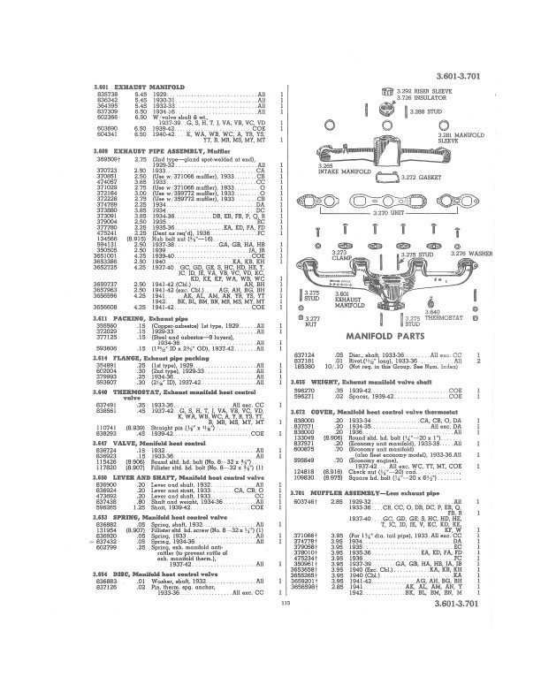 You will find original parts numbers, which are still useful today because most parts vendors still use those numbers to keep track of their own stock. You can also use this parts book to find out which parts on your car interchange with other years and models covered in this book. Parts books are the authority on the correct equipment for your vehicle; you'll know definitively which parts and accessories are original when you use this book.