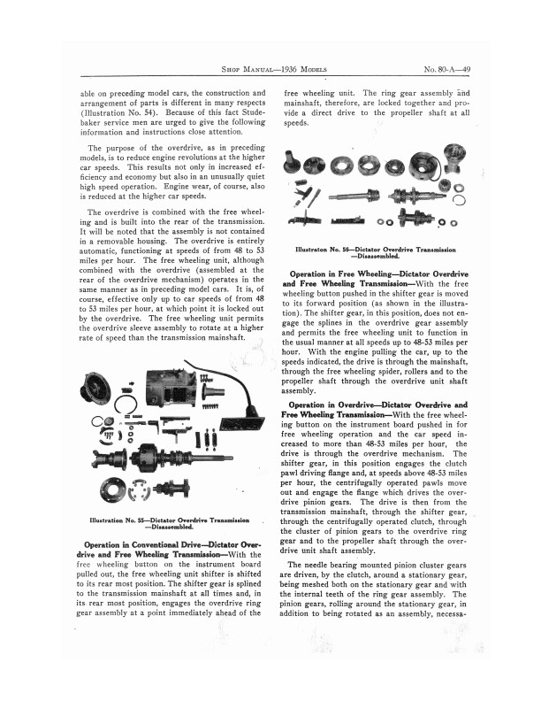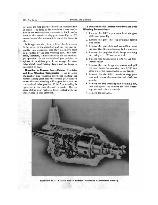 This reprint of a factory shop manual for the Dictator and President is the ultimate authority on bumper-to-bumper maintenance and repair. You will find diagnostic aids for engine problems with detailed troubleshooting solutions, extensive instructions for the removal and installation of your car's parts, and many cutaways and photographs. This manual features detailed instructions for engine work, starting a flooded engine, thermostat adjustment, setting ignition timing, overcoming generator failure, aiming headlamps, servicing cooling systems, transmission disassembly and reassembly, lubrication for all car parts, alignment, suspension work, brake service and more. Detailed pages with illustrations and electrical wiring diagrams. New condition. Buy now on the only service manual prepared by the General Service Department of Studebaker Corporation.
