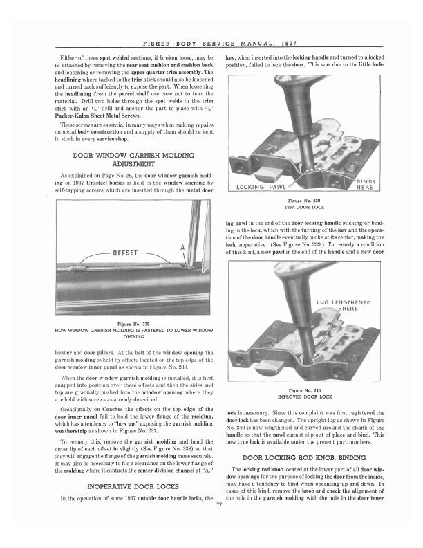 This is a high-quality, licensed reproduction of the manual written by GM for use at Buick dealers. Find out how to work on the body of your car with repair instructions which are different from what you will find in your shop manual. The book is packed with illustrations of the cars: you will find page after page of exploded and cutaway views showing the body's construction, including weld lines, the underbody, what the interior looks like without panels or headlining. Find out how to remove, install, and work on hardware & trim, seats & the metal framework below them, rumble seats, headliners, door panels, locks, arm rests, handles, glass, vents, moldings, weather-stripping, and hinges. Learn how to make adjustments, eliminate water leaks, and operate the convertible top. Includes wiring diagrams for interior lighting. 131 pages. New condition. Order now to own the best body repair manual for your car.