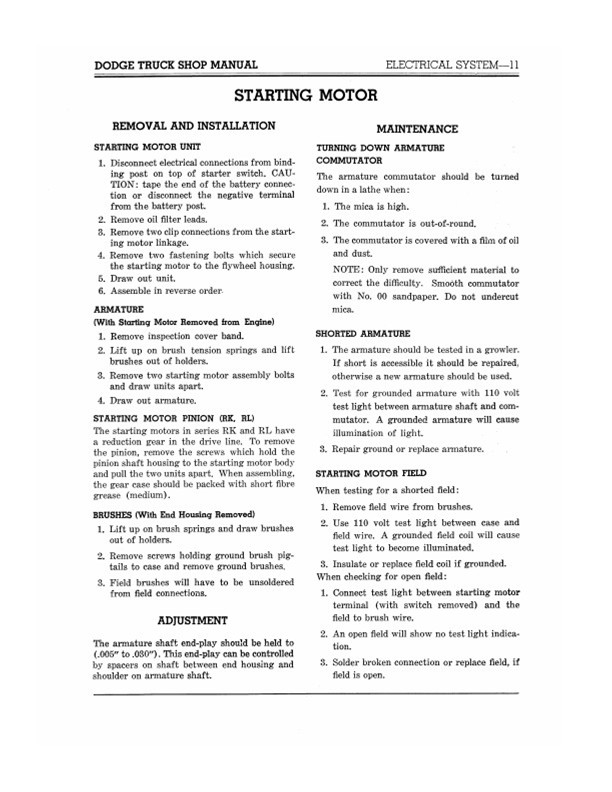 This USB offers page-for-page images of the bound manuals that Dodge mechanics used to service trucks. It includes the "Dodge Truck Shop Manual 1938." You will find detailed service procedures for lubrication, front axle, rear axle, brakes, clutch, cooling system, electrical system, engine, fuel exhaust system, frame, springs and shock absorbers, steering, transmission, universal joints, wheels, tires and body. With the step-by-step illustrated instructions, specifications, and wiring diagrams on this USB, you will have the information you need to get your project on the road and keep it there. The best part is that you can print out the pages you need, dirty them in the shop, and then throw them away. Great if you have a hard copy that you want to keep clean. Buy now to own the best manual for your vehicle on USB . We have manuals on paper also -- see our other items.