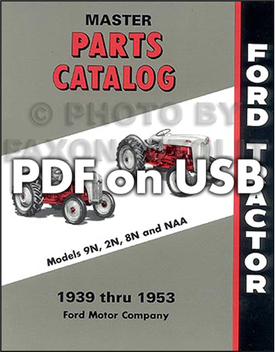 - (3) "Ford Tractor Master Parts Catalog Models 9N, 2N, 8N, and NAA 1939 thru 1953" (2 and 3) The second and third are parts books used by Ford dealers. You will find exploded views of parts to help you take the tractor apart or put it back together. Get the original part numbers and illustrations so you can find the right parts & decide whether the parts you are buying are original and complete. Learn about interchange between the parts on your tractor and the parts for other years and models in the book.