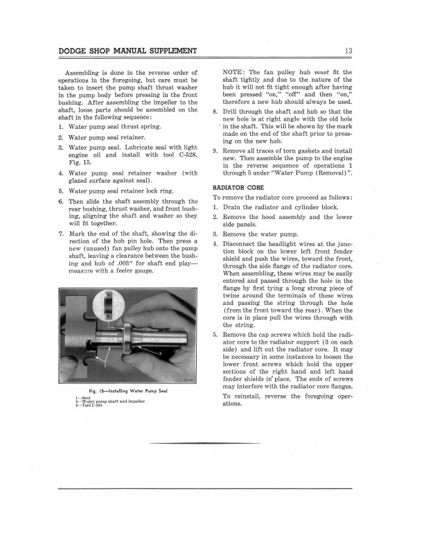 This is a reprint of the manual that Dodge mechanics used to service cars. Inside, you will find detailed service procedures for front axle, rear axle, body, brakes, clutch, cooling system, engine, exhaust system, frame, fuel system, shock absorbers, springs, steering, transmission, universal joints, wheels, and tires. Find out about maintenance, lubrication, and troubleshooting. With the step-by-step illustrated instructions, specifications, and wiring diagrams in this manual, you will have the information you need to get your project on the road and keep it there. This book contains supplemental information on those features that were new for '39 Dodges -- the supplement will refer you back to the 1938 Dodge Shop Manual for much of the information (see my other items). For complete repair instructions, use this manual in conjunction with the 1938 Dodge shop manual. The book has 68 pages and is NEW condition. Buy now to own the best manual for your vehicle.