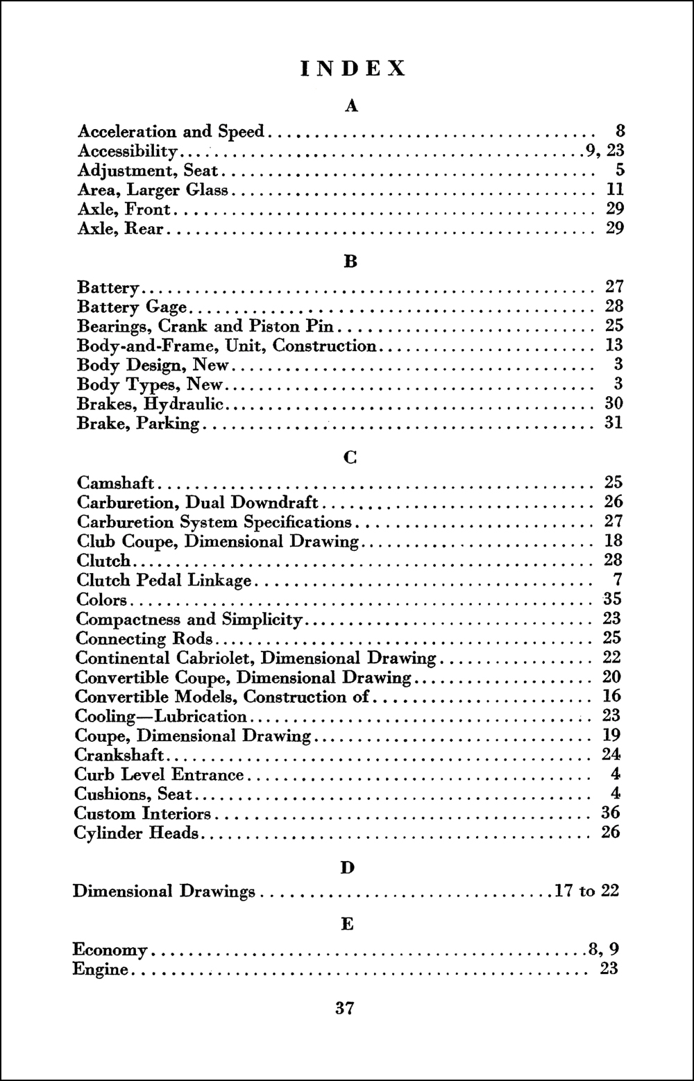 Data or Facts -- the most detailed information on standard and optional equipment, specifications, dimensions, accessories, and trim packages. You will find out the dealer's "inside information" that is far more detailed than a sales brochure. You'll find detailed descriptions of interior and exterior styling as well as mechanical and safety features with explanations of how the car changed for 1940. You'll see a side-view diagram of each body style with body dimensions.
