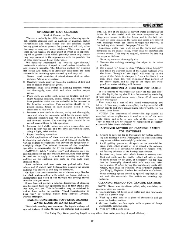 This is a high-quality reproduction of the manual written by GM for use at Cadillac dealers. Find out how to work on the body of your car with repair instructions which are different from what you will find in your shop manual. The book is packed with illustrations of the cars you will find page after page of exploded and cutaway views showing the body's construction, including weld lines, the underbody, what the interior looks like without panels or headlining. Find out how to remove, install, and work on hardware & trim, seats & the metal framework below them, headliners, door panels, locks, arm rests, handles, glass, vents, moldings, weather-stripping, and hinges. Learn how to make adjustments, eliminate water leaks, operate and service the convertible top. Covers all 1941 and 1942 Cadillacs that have Fisher bodies. New condition. Order now to own the best body repair manual for your car.