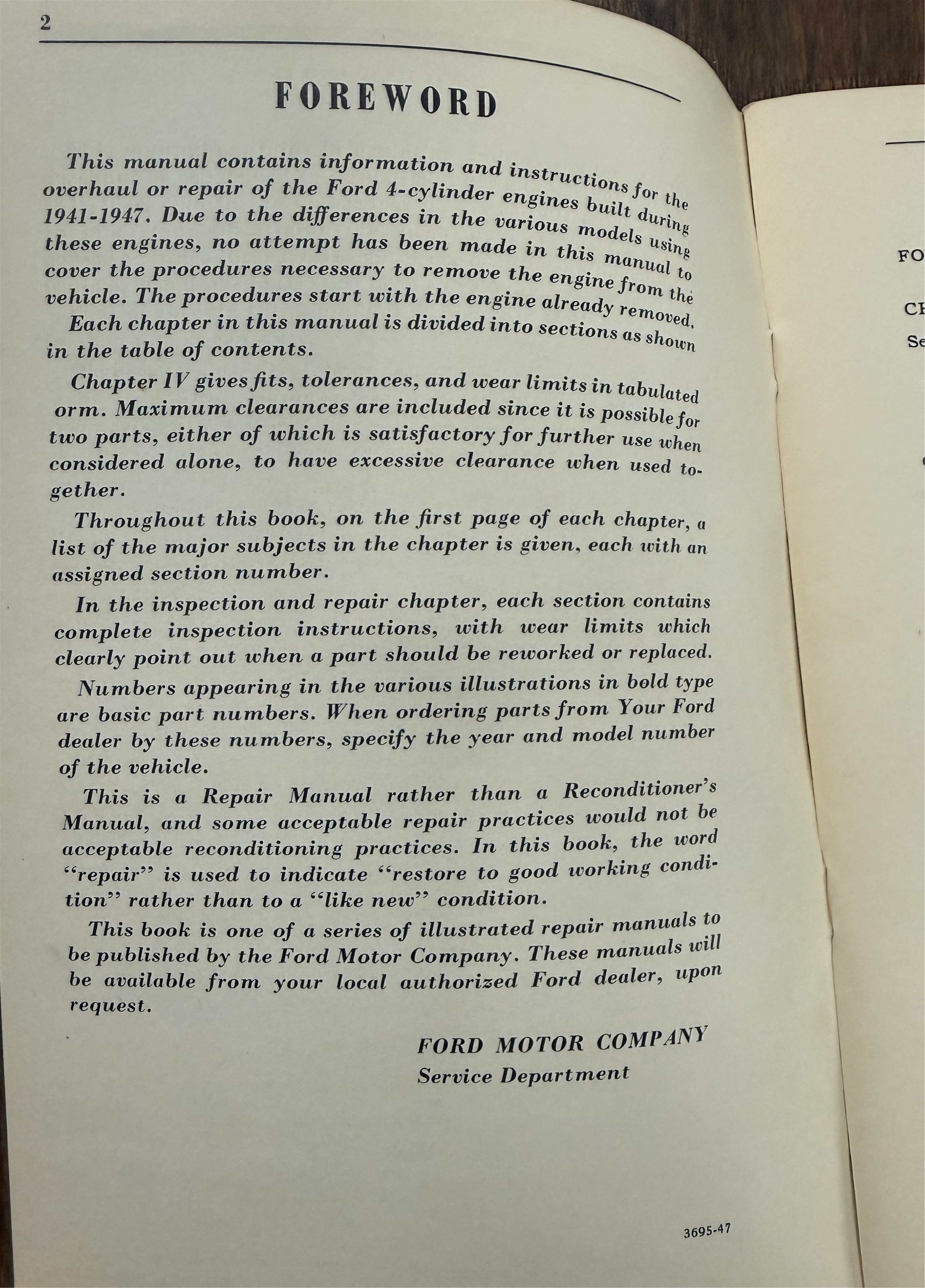 "Repair Manual Ford 4-Cylinder Engines 1941-1947"