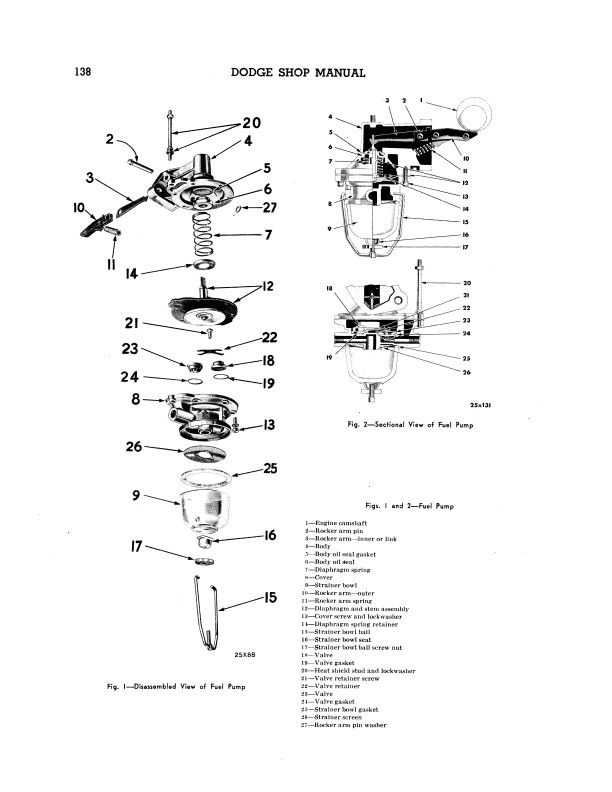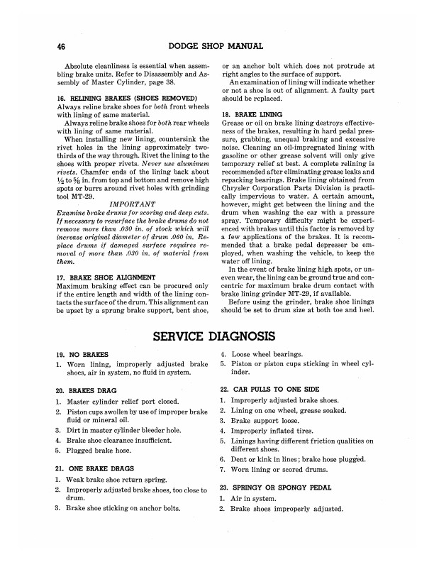 This manual is a page-for-page high quality reproduction of the book that Dodge mechanics used to service vehicles. Inside you will find detailed service procedures for front axle, rear axle, brakes, clutch, fluid drive, cooling system, electrical system, engine, fuel system, frame, springs, shock absorbers, steering, transmission, universal joints, propeller shaft, wheels, tires, body, and lubrication. With the step-by-step illustrated instructions, specifications, and diagrams in this manual, you will have the information you need to get your project on the road and keep it there. This 8 ½" by 11" shop manual has 230 pages, and is in New condition. You can use this book to restore all 1941-1942-1946-1947 and 1948 Dodge cars, models D-19, D-22, and D-24. Buy now to own the best manual for your Dodge.