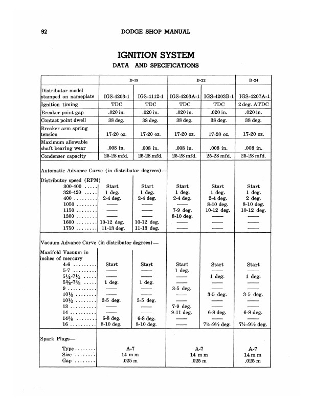 "Dodge Passenger Car D-19, D-22, D-24 Shop Manual"