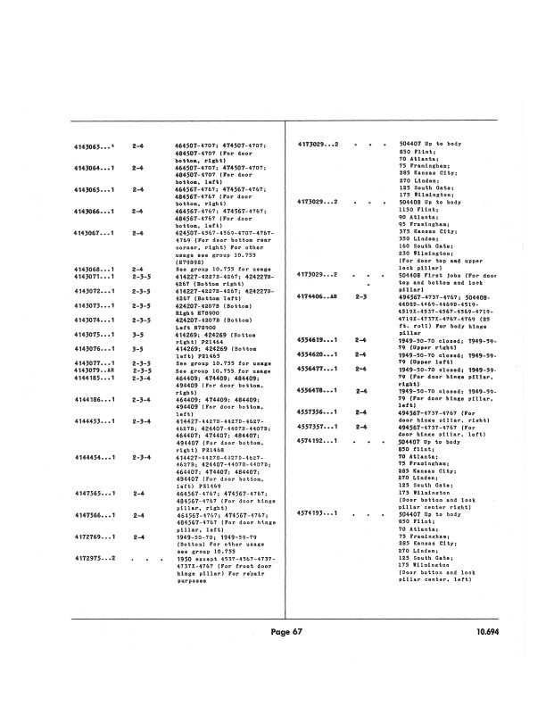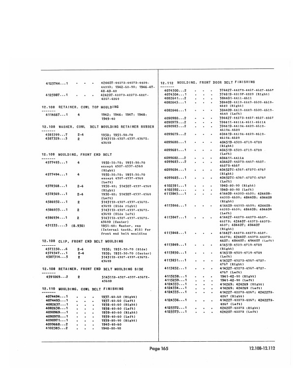 You will find original parts numbers, which are still useful today because most parts vendors still use those numbers to keep track of their own stock. You can also use this parts book to find out which parts on your vehicle interchange with other years and models covered in this book. Parts books are the authority on the correct equipment for your vehicle; you'll know definitively which parts and accessories are original when you use this book.