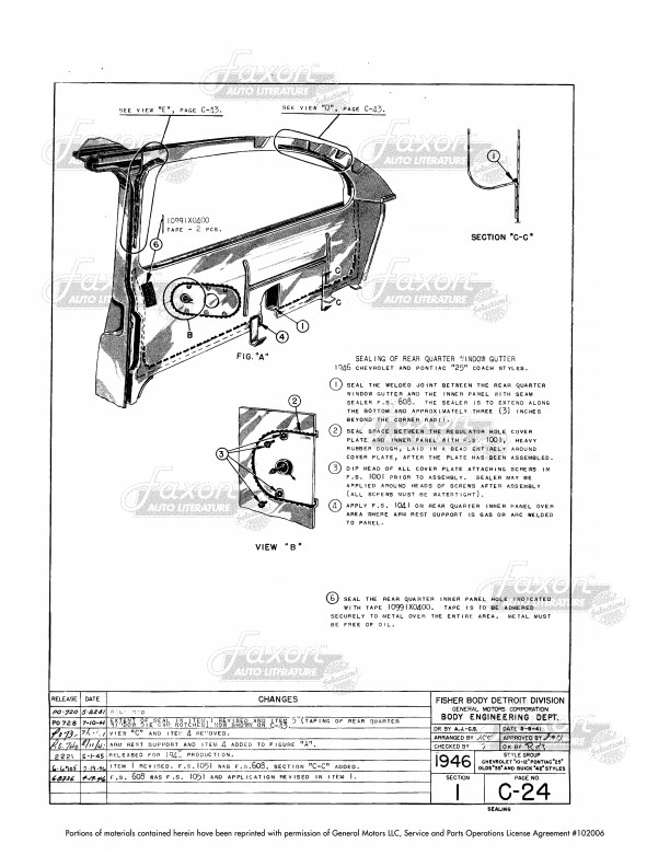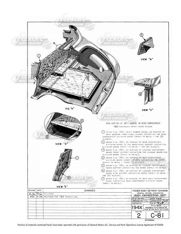 This book shows you how GM originally made your car watertight and sound proof. It’s a useful resource for keeping your car protected and comfortable today; these cars are old enough that many of the seals need replacing. It’s filled with cutaway illustrations of the body, including the metal and the wood. The manual shows you how to apply sealants (rubber cement, primer, rubber dough, solder, lubricants, and more) to the car; it does NOT focus on adding parts to the car.