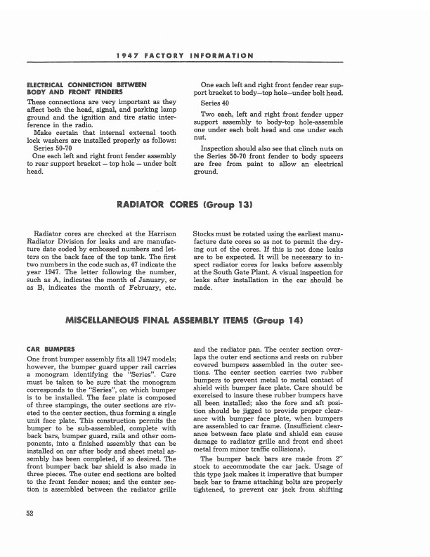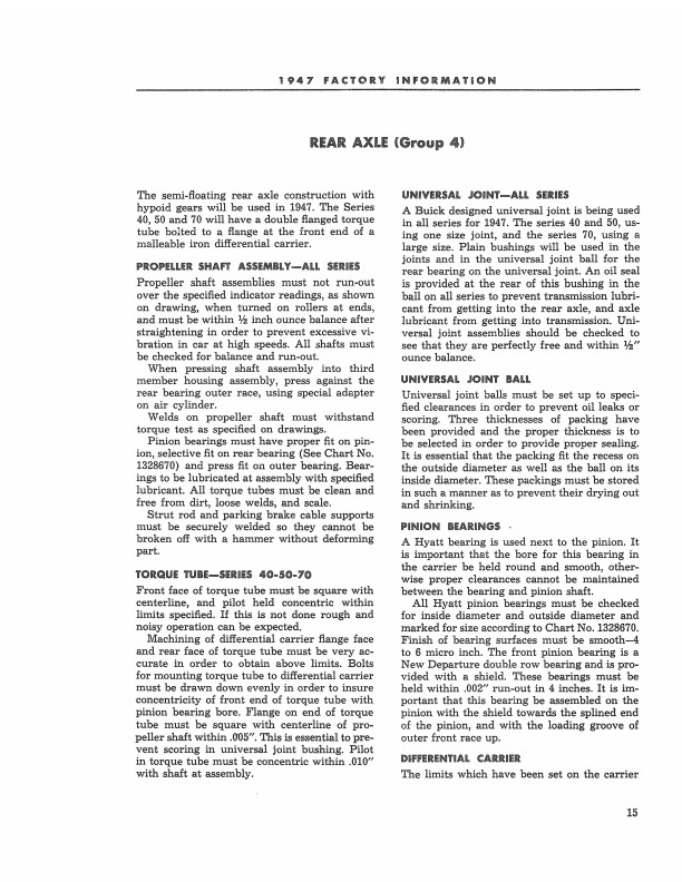 "1947 Buick All Models Written Assembly Instruction Manual"