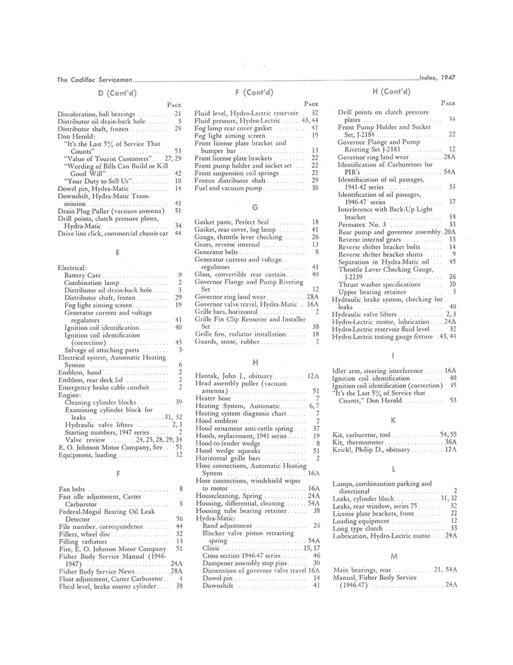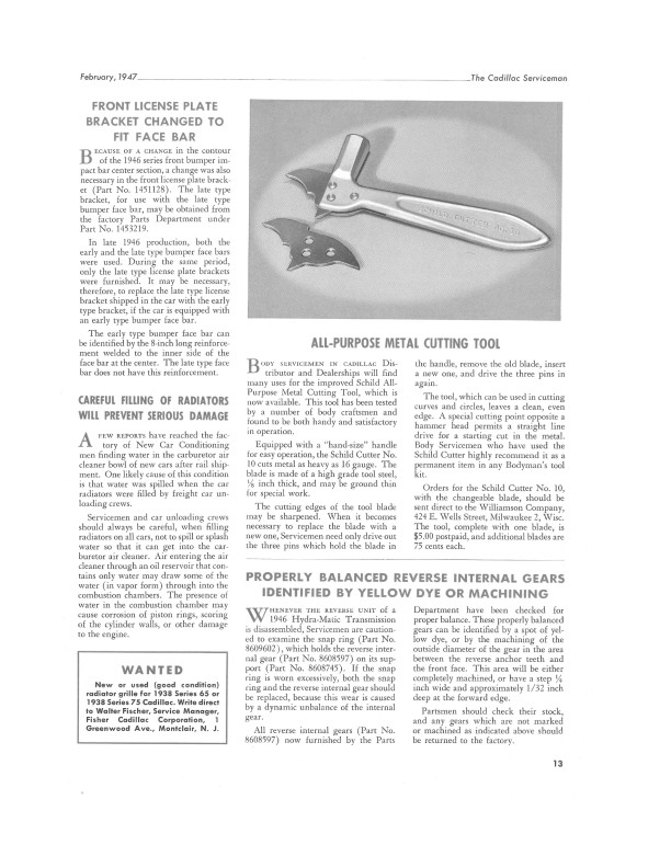 "1947 Cadillac Serviceman Service Bulletins"