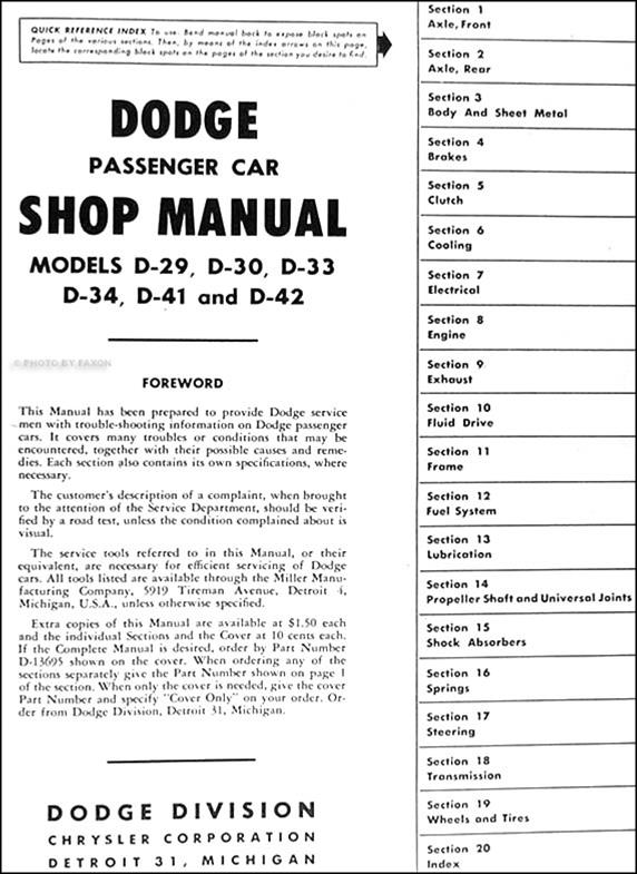 1949 - 1952 Dodge Passenger Car Shop Manual