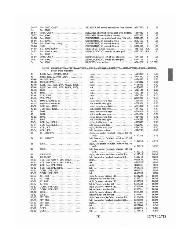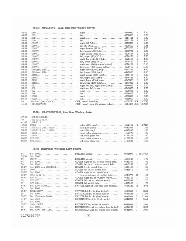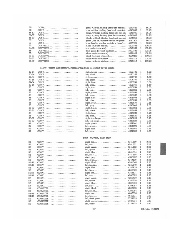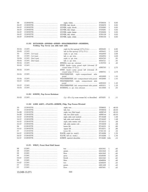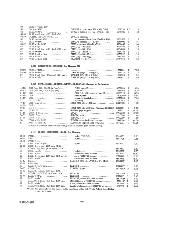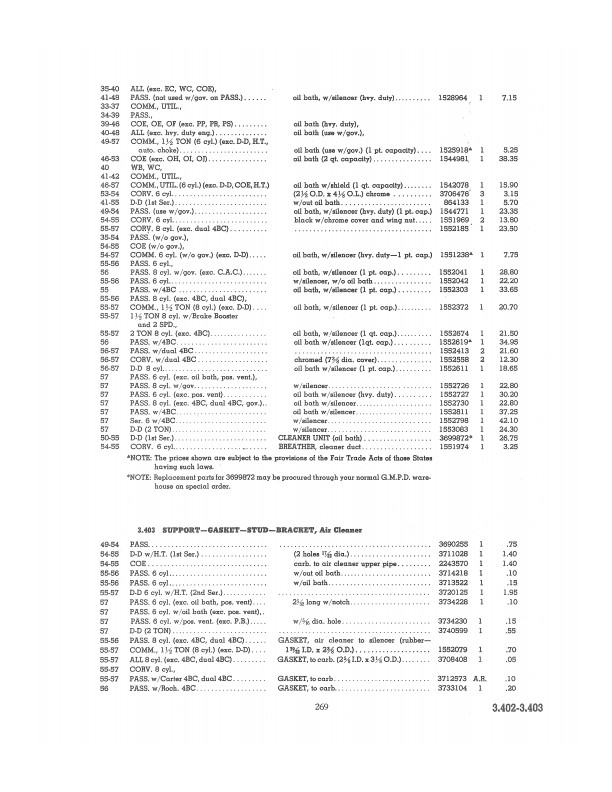 This set is a reprint of the book that was used in a Chevrolet dealer's parts department so that customers could order parts. You will find illustrations and the original part numbers, which are still useful today because most parts vendors still use GM's numbers to keep track of their parts. Use these manuals to make your search for parts both quicker and easier. The illustrations will help you to identify parts, and the exploded views can aid you with assembly or disassembly of some parts of the vehicle. Covers engine, clutch, cooling system, grille, oil system, chassis, electrical, fuel, exhaust, carburetion, transmission, brakes, axles, steering, frame, springs, bumper, sheet metal, hear, air conditioning, instruments, and body. You can identify if the parts you are buying are original and complete; if you're missing parts, you can use the manual to see what you should have. If the same part number is used for more than one year, you can also find out interchange between the different years and models covered in these manuals. Buy now to own this factory information.