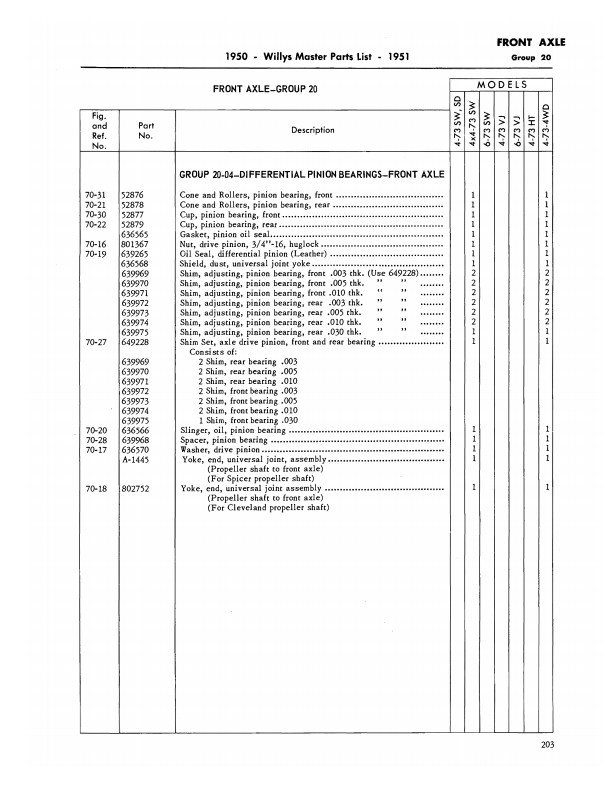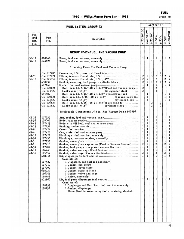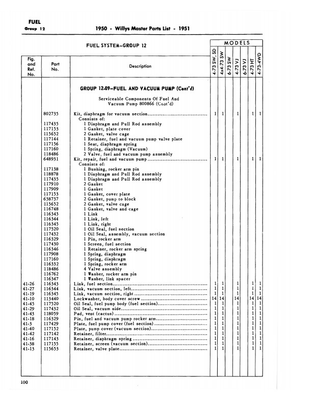 This is a reprint of the book that a Willys dealer's parts department used to order parts. You will find illustrations and the original part numbers, which are still useful today because most parts vendors still use Willys numbers to keep track of their parts. Use this book to make your search for parts both quicker and easier. The illustrations in the book will help you to identify parts, and the exploded views can aid you with assembly or disassembly of some parts of the vehicle. You can also identify if the parts you are buying are original and complete; if you're missing parts, you can use the book to see what you should have. If the same part number is used for more than one year, you can also find out interchange between the different years and models covered in the book. You'll see original part numbers for mechanical parts, body parts, and accessories. The book includes a convenient alphabetical index by part name, as well as a numerical index by part number. Buy now to own the best parts book for your Willys.