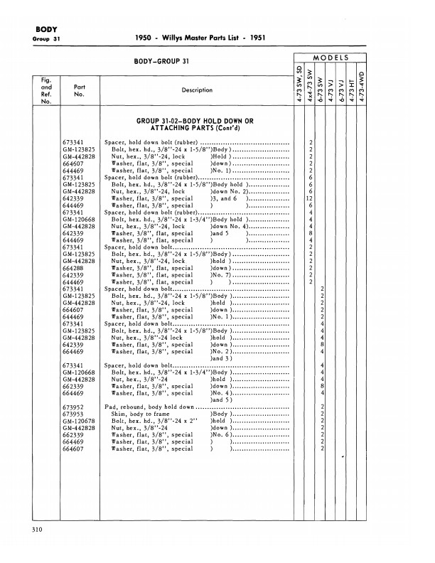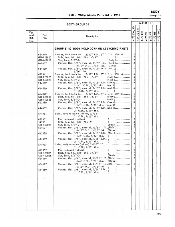 "1950-1951 Willys Motors, Inc. Master Parts List Jeepster Pickup Station Wagon Sedan Delivery"