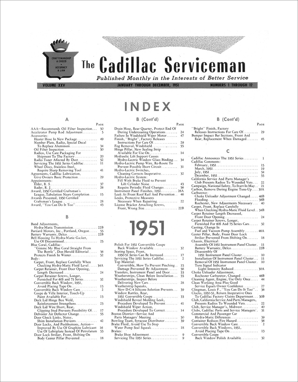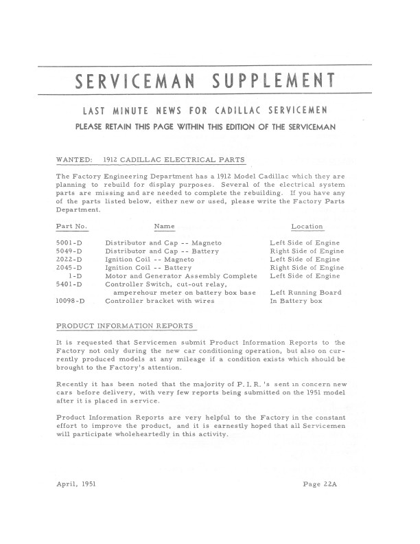 "1951 Cadillac Serviceman Bulletins"