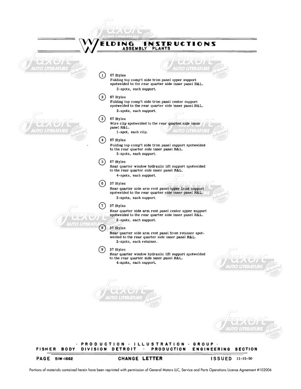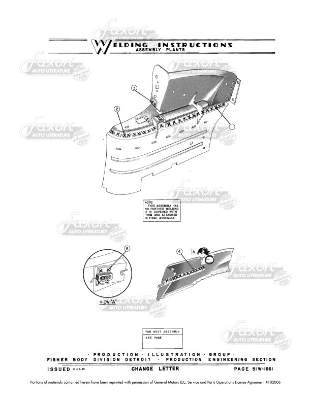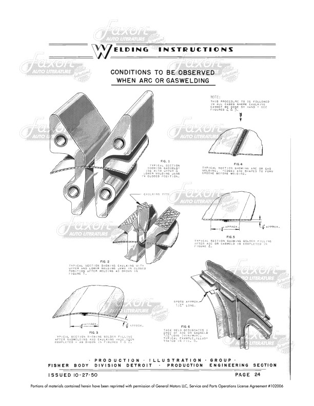 This assembly manual is unlike anything you've ever seen. This Fisher body plant assembly manual shows how metal body parts are welded together - it shows the location of hundreds of welds. It’s helpful for hidden welds holding up parts you might need to remove and replace. If you’re replacing parts due to rust, you’ll find out how to replace mounting parts that have rusted away. The book is particularly useful if the car has had damage from a wreck. You learn the specific type of weld (stitch, gas, seam, etc.) that was originally used in each location.