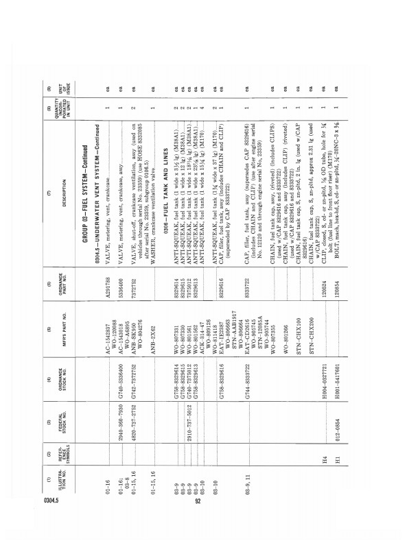 "Mid 50's Department of the Army Supply: Group G, List of all Service Parts for Truck, Ambulance, Front Line, 1/4 Ton, 4x4, M170 Truck, Utility: 1/4 Ton, 4x4, M38AI Manual." This is a high-quality reproduction the book that originally would have been used by the military to order parts. You will find the original part numbers, which are still useful today because most of the parts vendors still use the original manufacturer's numbers to keep track of their parts. Use this book to make your search for parts both quicker and easier. The illustrations in the book will help you to identify parts, and the exploded views can aid you with assembly or disassembly of some parts of the vehicle. Find out if the parts on your Jeep and the parts you are buying are original and complete. Find out which parts interchange with other years and models covered in this book. Covers 1952, 1953, 1954, 1955, 1956, 1957, and 1958. 449 pages. New condition. Don't miss the opportunity to own this hard-to-find book.
