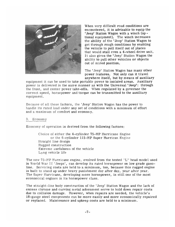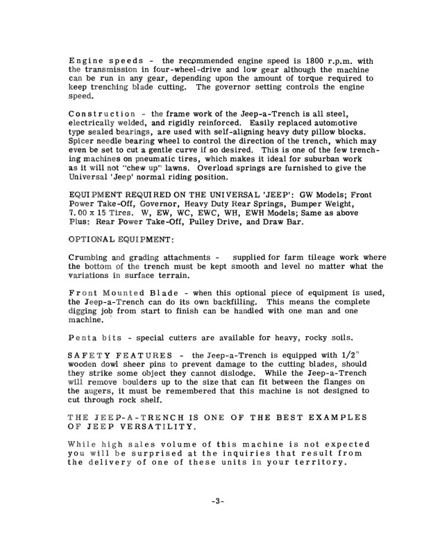 This page-for-page reprint of a book that Jeep dealers used in the 1950s has two parts: (1) sales information including factory standard equipment and specifications for jeeps and (2) pictures and description of special optional equipment for Jeeps.
