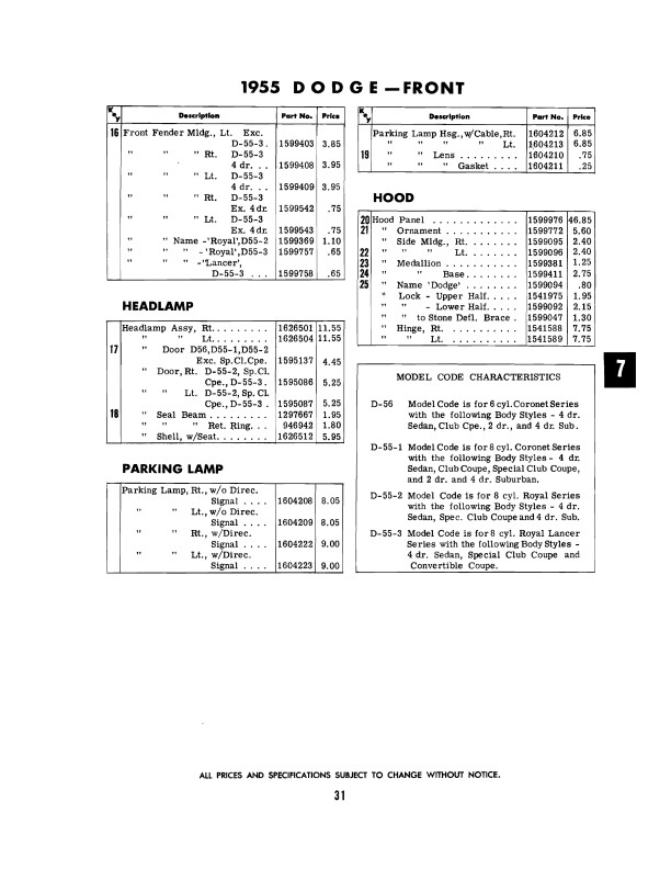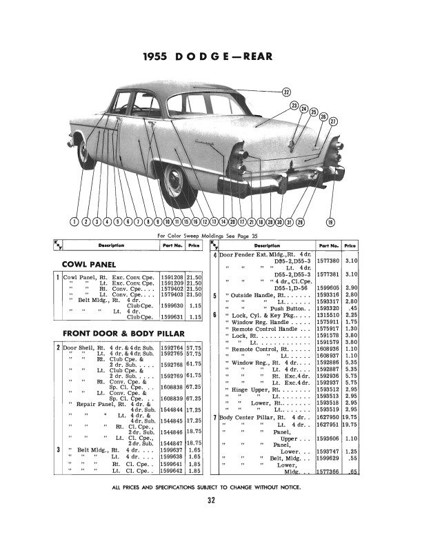 This is a quality licensed reprint of the book that garages, body shops, dealers and repair shops would have used to order MoPar body parts. It includes the most commonly needed parts. You will find bumpers, grilles, hoods, radiators, panels, moulding, suspension, fenders, exterior lights, and more. Find original parts numbers, model application data and group numbers; as well as diagrammed exploded view illustrations for easy identification. You will find illustrations and the original part numbers, which are still useful today because most parts vendors still use Dodge's numbers to keep track of their parts. Use this book to make your search for parts both quicker and easier. This book is in new condition. Buy now to make your search for parts easier.