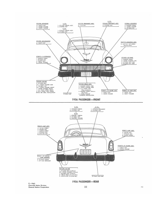If you are restoring a Chevy, this is the book that will help you put the finishing touches on your car. This manual holds the key to that cherry look - right down to the last detail. You will find pictures plus original Chevrolet part numbers for exterior chrome trim - moulding, clips, nuts & screws that you will need to attach it, ornaments, emblems, and letters. Buy now because its not a Chevy until it says it's a Chevy.