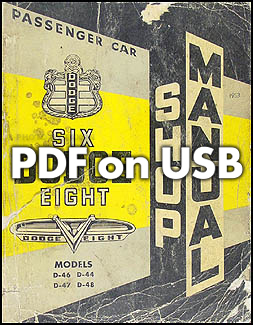 This USB offers page-for-page reproduction of the bound manual that Dodge mechanics used to service cars. It includes the 687 page "1953 Dodge Passenger Car Shop Manual." With the step-by-step illustrated instructions, specifications, and wiring diagrams on this USB, you will have the information you need to get your project on the road. The best part is that you can print out the pages you need, dirty them in the shop, and then throw them away. Great if you have a hard copy that you want to keep clean. Buy now to own the best manual for your car on USB. We have manuals on paper also -- see our other items.