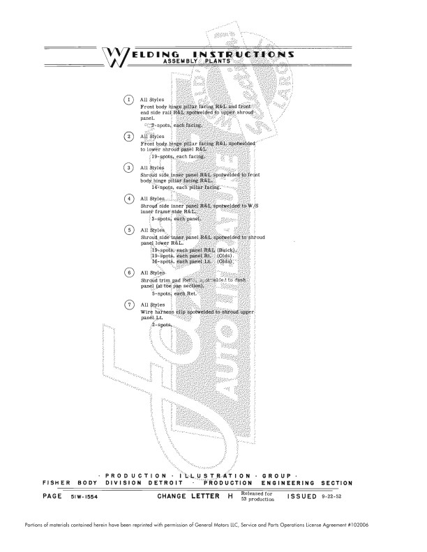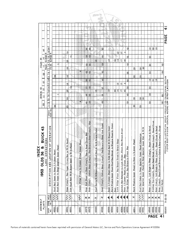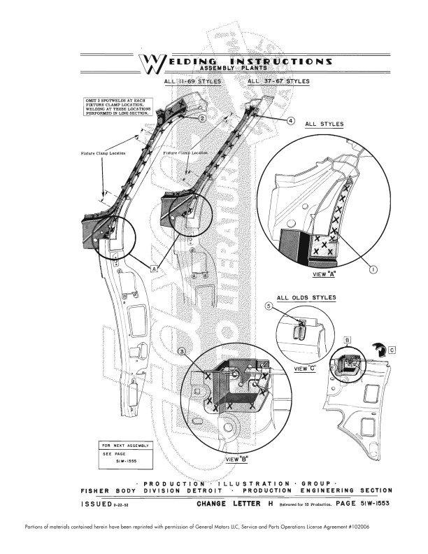 This assembly manual is unlike anything you've ever seen. This Fisher body plant assembly manual shows how metal body parts are welded together - it shows the location of hundreds of welds. It’s helpful for hidden welds holding up parts you might need to remove and replace. If you’re replacing parts due to rust, you’ll find out how to replace mounting parts that have rusted away. The book is particularly useful if the car has had damage from a wreck. You learn the specific type of weld (stitch, gas, seam, etc.) that was originally used in each location.
