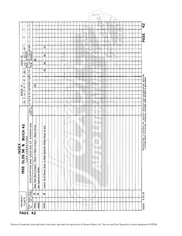 The book covers cars from the firewall back; the hood and front fenders are not covered (because these were assembled at the chassis assembly plant and not the Fisher body plant). Please see the table of contents image. All pages are watermarked with a background image like the sample page. Buy now to own this hard-to-find manual.