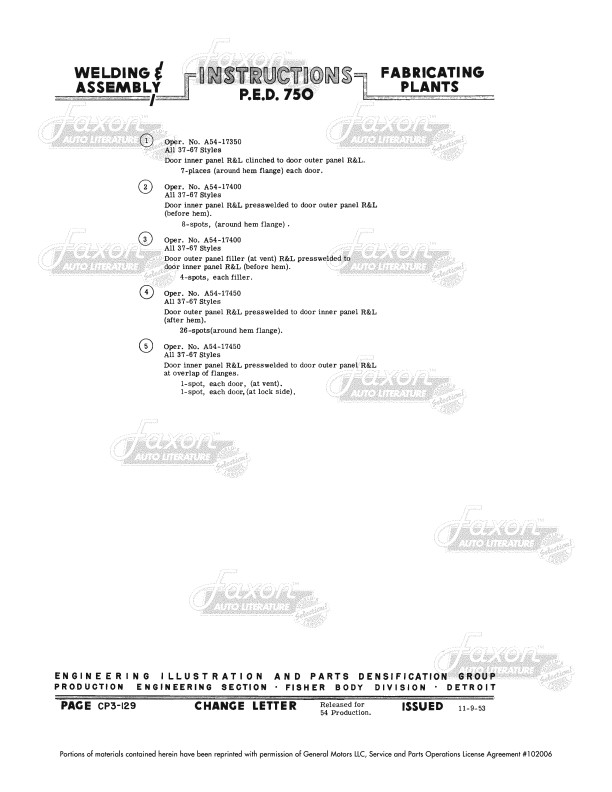The book covers cars from the firewall back; the hood and front fenders are not covered (because these were assembled at the chassis assembly plant and not the Fisher body plant). Please see the sample page image. All pages are watermarked with a background image like the sample page. Buy now to own this hard-to-find manual.
