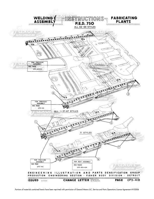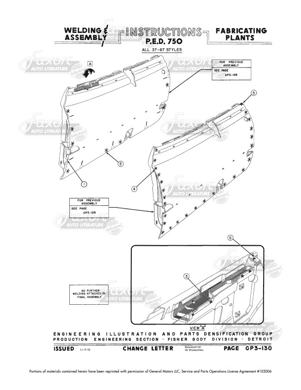 This assembly manual is unlike anything you've ever seen. This Fisher body plant assembly manual shows how metal body parts are welded together - it shows the location of hundreds of welds. It’s helpful for hidden welds holding up parts you might need to remove and replace. If you’re replacing parts due to rust, you’ll find out how to replace mounting parts that have rusted away. The book is particularly useful if the car has had damage from a wreck. You learn the specific type of weld (stitch, gas, seam, etc.) that was originally used in each location.